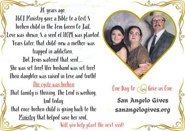 Join us in bringing hope and faith to inmates and their families in Tom Green County.