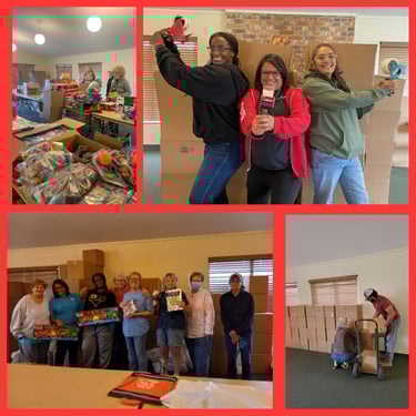 Through God Comes Justice brings Christmas to the children of those incarcerated in jail. Over 500 boxes of age-appropriate toys and food boxes are provided.