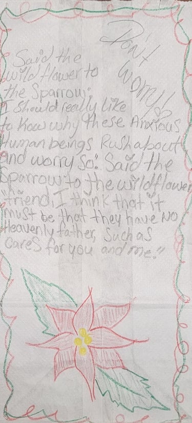 "I know the Lord and feel His spirit over me as I write this. I thank you from the bottom of my heart for that Bible; it has been a weapon to help me overcome death. Thank you, the Lord has plans for me and has saved me from the mouth of the lion. He's not done with me, and I've been telling everyone how He has changed my life."